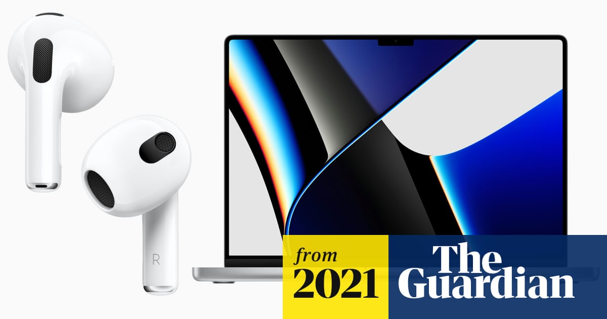 Apple has announced new third-generation AirPods and its much-anticipated new MacBook Pro laptops, with new screens and high-end M1 Pro and M1 Max chips.During a livestreamed event on Monday, the Apple chief executive, Tim Cook, unveiled the redesigned Bluetooth earbuds and the first of the company’s revamped high-end computers as it continues its switch from Intel to chips of its own design.Third-generation AirPodsThe third-generation AirPods have all the same instant-pairing features as Apple’s other earbuds. Photograph: AppleThe new AirPods mirror the design of the more expensive AirPods Pro, with shorter stalks and squeeze controls, but no silicone earbud tip or active noise cancelling.They have improved speakers for better quality audio, longer battery life giving up to six hours playback and a redesigned charging case with MagSafe wireless charging.The earbuds also support head-tracking for Apple’s spatial audio surround-sound feature for movies, TV and music, and have an adaptive equaliser similar to the AirPods Pro.The third-generation AirPods will cost £169 in the UK and $179 in the US and will ship on 26 October. Apple also introduced a cheaper Apple Music plan costing £4.99 a month that can only be controlled via Siri on Apple devices.MacBook ProThe new redesigned MacBook Pros offer larger screens and faster performance with new M1 Pro and Max chips. Photograph: AppleThe long-awaited new MacBook Pros mark the biggest change to Apple’s top laptop line since 2012 and ditch the secondary OLED “Touch Bar” screen introduced in 2016, which proved unpopular with many of the company’s high-end users.The laptops have larger 14.2in or 16.2in screens with significantly smaller bezels and a notch similar to the iPhone for the upgraded 1080p webcam. Both displays have miniLED and 120Hz ProMotion technology as seen in the iPad Pro for increased brightness, HDR (high-dynamic range) support and smoother animations.The new MacBook Pros also mark the return of a variety of ports to Apple’s laptops, including three Thunderbolt ports, HDMI, SD card slots and the MagSafe 3 magnetic charging system, which was a much-loved mainstay until 2016. The body is made of 100% recycled aluminium too.Inside the laptops are Apple’s new M1 Pro and Max chips, which build on the success of the M1 processor used in the MacBook Air, low-end MacBook Pro, Mac Mini, iMac and iPad Pro.The new chips have 10-core processors that are up to 70% faster than the M1 and 16 or 32-core graphics, depending on version, which Apple says are twice or four times more powerful than M1. The chips support up to 64GB memory and have significantly longer battery life of up to 21 hours video playback, with fast charging support too.The MacBook Pro marks an important test for Apple’s custom silicon as it is one of the main lines used by the company’s large third-party developer community, which create apps and services that make the iPhone, iPad and Mac a success.Developers are some of the most demanding users of computers, and alongside creative professionals making films and TV, will require great things from the new chips to persuade them to dump their older Intel-powered Macs and PCs.The 14in and 16in MacBook Pros start at £1,899 or $1,999 and £2,399 or $2,499 respectively and will ship on 26 October.The next version of Apple’s desktop operating system, macOS Monterey, will be released on 25 October after its announcement at the company’s developer conference in June.