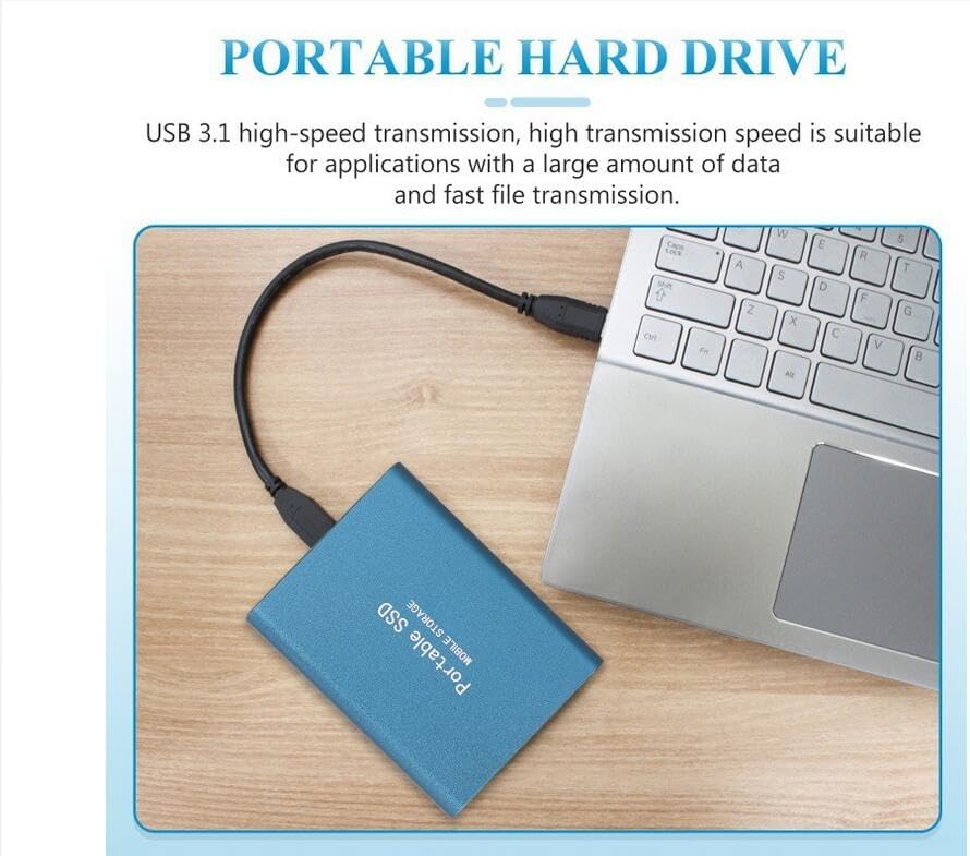 2TB Ultra Slim Portable Solid State Drive USB 3.1 for Laptop, Desktop Computer, Smart TV, TV Boxes, Routers, Androd Phone with OTG Function, Shockproof Mobile Hard Drive 2TB Blue