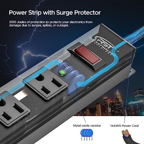 [All-round Protection] 2100 joules of protection to protect your electronics from damage due to surges, spikes, or outages. 15 Amp circuit breaker is equipped to instantly react to catastrophic events and overloads, providing maximum protection.