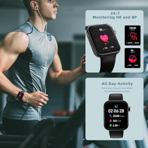 【1.83″ Smart Watch & DIY Dial】: Square smartwatches for men women is made of soft, skin-friendly materials and is ergonomically designed to be more skin-friendly. smart watch blood pressure monitor is equipped with a 1.83″ TFT full touch screen. And this fitness smartwatch works with the FitCloudPro app, which is equipped with more than 100+ online watch faces of different styles, as well as DIY custom watch faces. You can also set your favorite photos or pictures as watch faces.