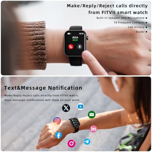 【Bluetooth Call& Text Reminder】: FITVII smart watch can be connected to the mobile phone through Bluetooth, so that you can answer and make calls on the watch, and you can also receive notifications from Whatsapp, Twitter, Facebook, SMS, etc. The voice assistant will be your Awesome Assistant. Effectively solve the situation that it is inconvenient to look at the mobile phone when you are meeting, riding, exercising, or cooking.