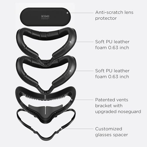 💡 5 in 1 Set and 18-Month Hassle-free Warranty: 0.63” Face cushion pad * 2, facial interface bracket with updated noseguard * 1, glasses spacer * 1, and lens protector* 1, 1 set meets all your needs. The simple and effective lens protector is dust-proof, scratch-proof, and sun-proof, as an extra gift for you. For any pre-sale or after-sales issues, an 18-month hassle-free warranty is guaranteed feel free to contact us. KIWI design will be your trusted game companion