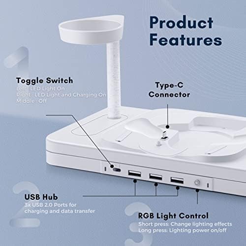 USB 2.0 Ports for Charging and Data Transfer – The charging dock has three USB ports that can be used to charge devices, connect devices, and transmit data. Ideal for playing while attaching and charging controllers and other gadgets