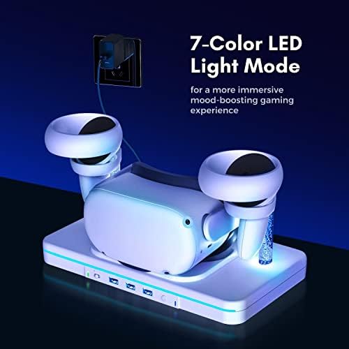 TNP Charging Dock for Oculus Quest 2 – VR Headset and Controller Charging Dock Station with RGB Light and 3X USB 2.0 Ports – USB-C Cable for Fast Charging and Data Transfer