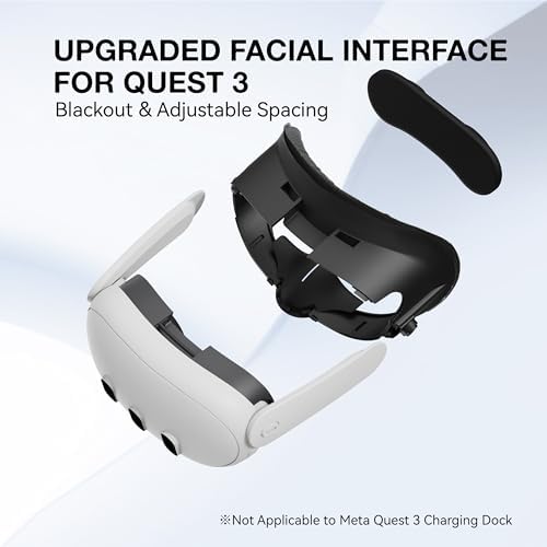 VR Facial Interface Kit for Quest 3 Headset – You will get 1 facial interface with cushion and nose pad, 1 replaceable face pad, 1 lens protector. This face cover pad facial interface kit provides an excellent VR experience for improved hygiene and comfort and immersion during prolonged VR gaming or exercise session, reduces facial pressure when wearing. Designed to keep in place even through the most intense workouts and gaming sessions.